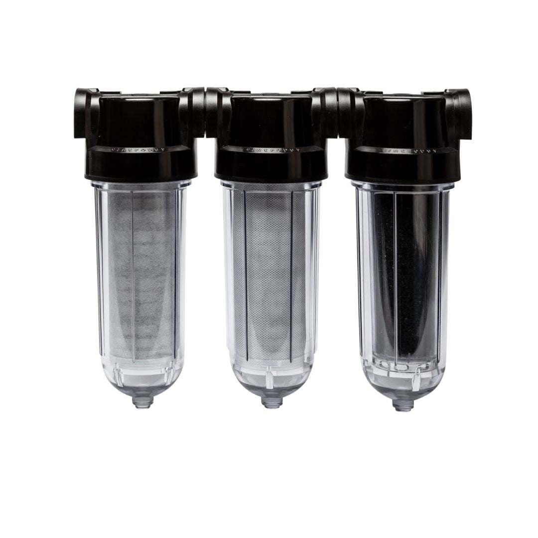 Cintropur Trio SL240 är ett effektivt trestegsfilter som kombinerar två olika partikelsteg med ett kolfilter. På så sätt får du en lösning som inte bara förbättrar smak, lukt och färg, utan också reducerar kemikalier som PFAS och organiska föroreningar. Tack vare den kompakta storleken är det enkelt att placera under diskbänken, i fritidshus eller i husbil och husvagn.